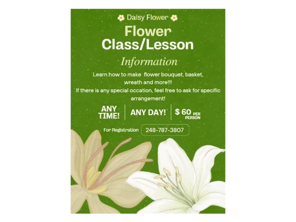 Daisy Flower is a privately owned company founded in May 1st 2025. With more than 20 years of experience in this field, our florists continue to serve the community with the freshest flowers in town. We are thrilled to provide to our customers, and look forward to talking to each and every one of you.